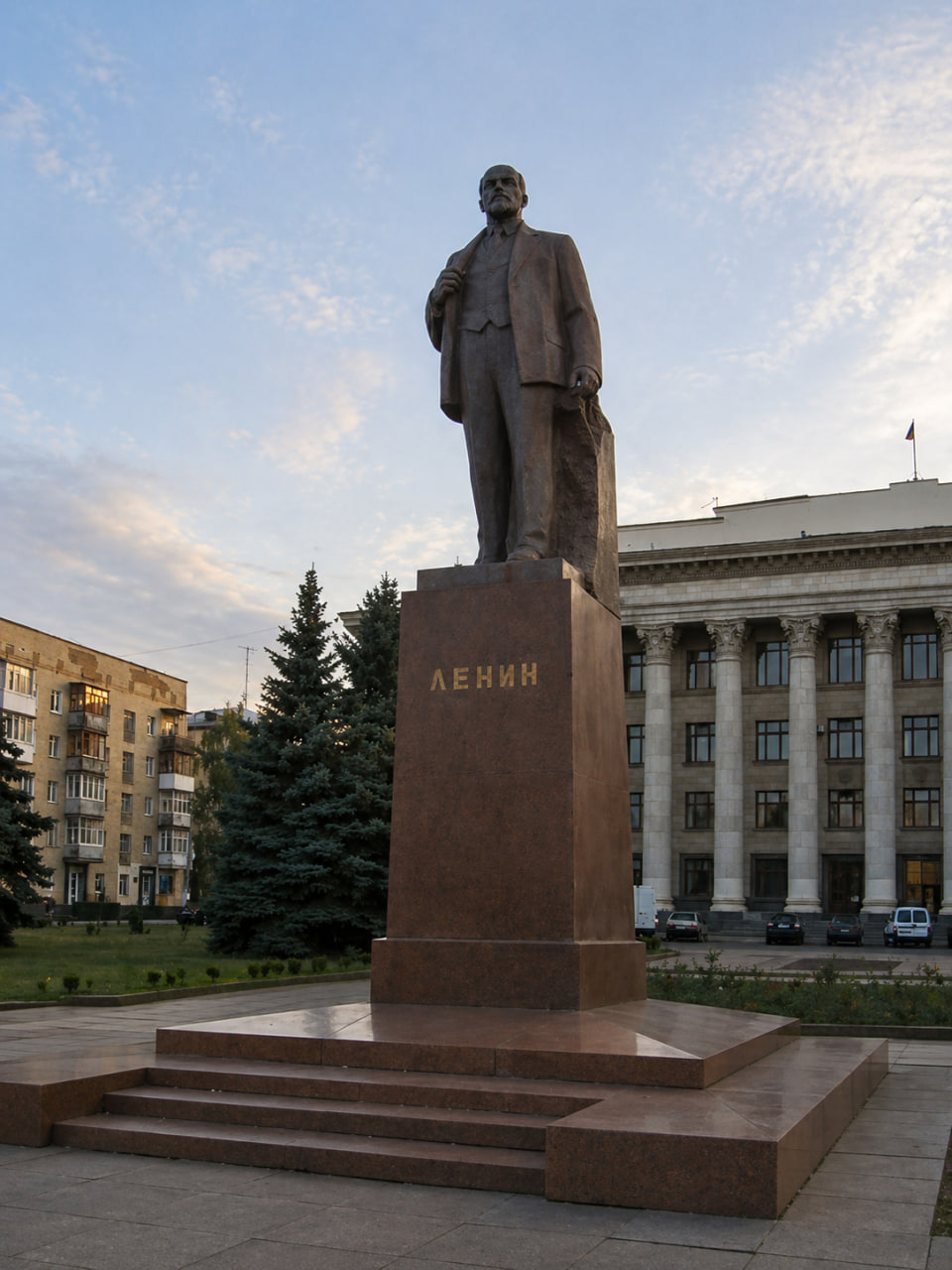 Раніше тут стояв пам’ятник Леніну, але у 2014 році його демонтували, і простір став більш відкритим та універсальним.
