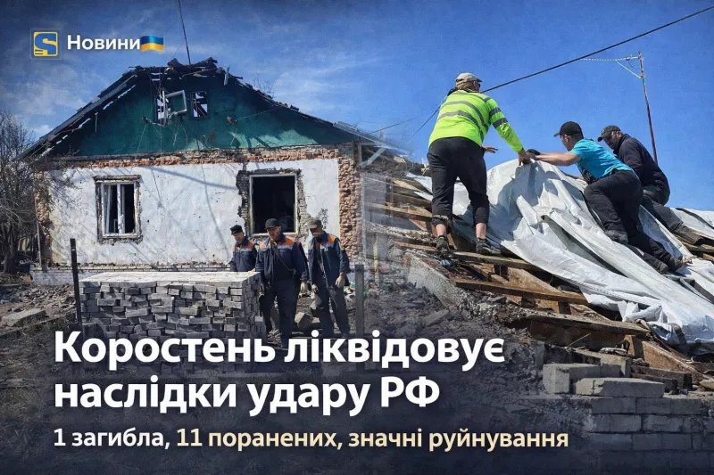 У Коростені триває ліквідація наслідків ворожого російського удару. Основні зусилля зараз спрямовані на допомогу постраждалим та відновлення зруйнованого житла.