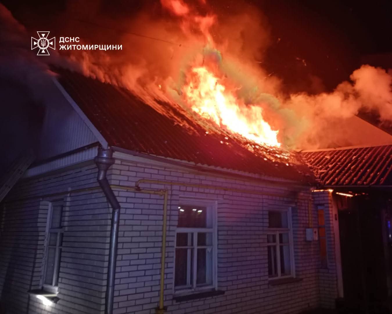 У Житомирі вночі сталася пожежа у приватному житловому будинку, розрахованому на кількох господарів.
