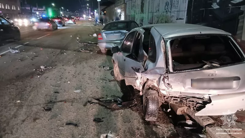 8 грудня на проспекті Незалежності у Житомирі сталася ДТП за участю чотирьох автомобілів. Водій BMW не врахував дорожню обстановку, не дотримався безпечної швидкості та наїхав на припарковані Skoda, ВАЗ та ще одну Skoda.