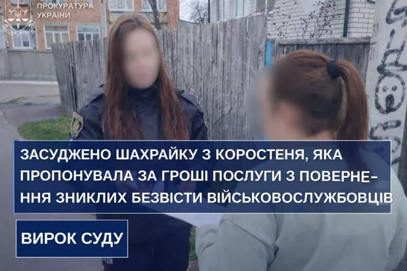 У Коростені суд визнав винною 31-річну місцеву жительку, яка обманом виманювала гроші у родичів безвісти зниклих військовослужбовців.