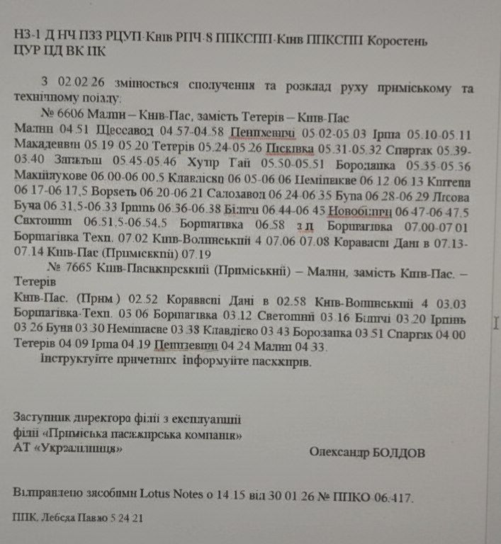 АТ «Укрзалізниця» офіційно повідомила про зміну сполучення та розкладу руху приміських поїздів, які мають ключове значення для мешканців Малинської громади.